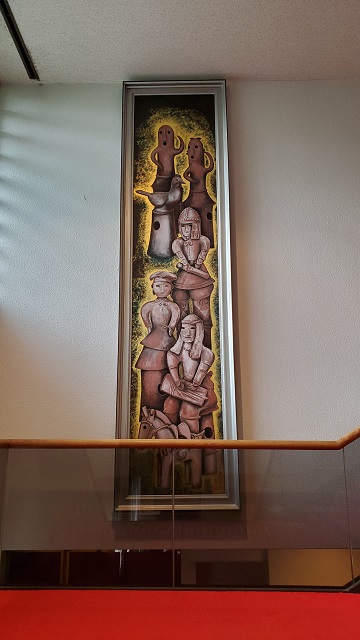 今日は6月25日。”ねりま演劇を観る会”の2日目の公演。会としては214回目の例会。 会場は練馬文化センター。 ロビーには素晴しい絵が飾ってある。 その中の1枚。”古代の詩(ウタ)”というタイトルのうるし絵に思わず見入ってしまった! 何体かの埴輪が描かれている。あの独特の目でジーッと正面をみすえている。 今の世の中の何を見つめているのだろうか!? 思わず私の背もピンッとまっすぐに。 藤井美恵子 |