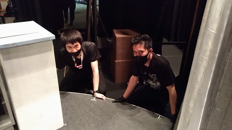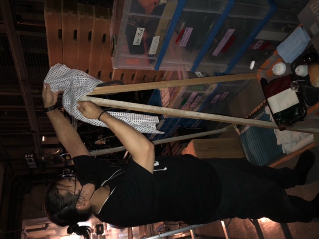 写真は舞台袖でのコード養生の様子です、裏での細かい作業が舞台を安全に進める為に必要な事なのです。 仕込みも無事に終わり、明日は首都圏ブロックの初日になります。いい舞台を届けて旅公演のスタートダッシュと行きたいです。