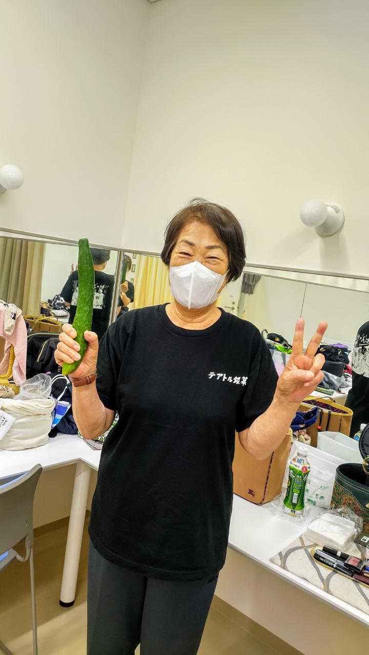 2021/7/11 本日は鳴門市民劇場さんの公演です!「キネマの神様」も残り3ステージを残すのみとなりました。朝からセミも鳴いて、段々と夏らしい陽気になってきました。暑い中ですが、元気いっぱいな会員さん達と一緒に本日もせっせと搬入開始です! 本番前の皆の様子をすこーしお届けしますね♪〜(´ε` ) ![]() まずはこの方。藤井さんときゅうりとピースサイン…良い絵が撮れました。この日一番のお気に入り写真。 ![]() お昼ご飯を抱えた杉本さんとこちらは… ![]() 小道具の準備をしてる奥原さんとそれを覗いてる広戸さんですね。何を準備してるのかしら…?それは舞台を観てのお楽しみ。 ![]() 藤木さんと中津原さんのツーショットも和みます(*´`*)kawaii 会員の皆さんとの対面式。キネマTシャツ着てくださってる会員さんも沢山います。 ![]() 初演の時にTシャツ作りを担っていた身としてはすごく嬉しいー!(^^) とてもあたたかい雰囲気の中お互いに健闘を励まし合い、本番に向かいます。 ラストが近づく度に初演からの色々な思いが蘇ってきて、とても寂しく思うのと同時に満たされた時間だったなあと胸が一杯になります。今日も客席との出会いを楽しんで。よりよい空間を作っていきたいです。 さ、いってきまーす! 藤代梓(清音) |