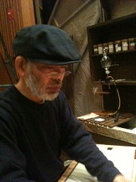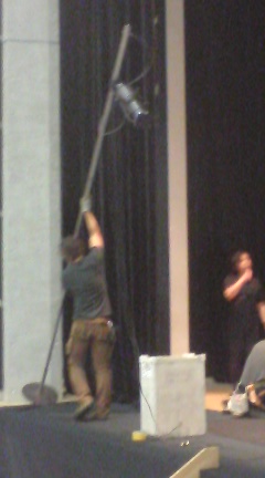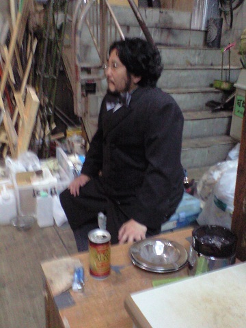 さて、本番間近。この人は誰あろうエイブ菅原。「鏡よ、鏡 世界で一番美しいのはだぁれ?」