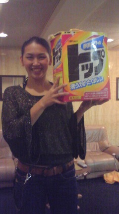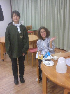 製作として来てくれた白木さん&ハンドタオルで作ってあるクリスマスケーキたち。コレ、実物はかなり手がこんでてカワイイんです!!