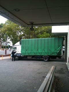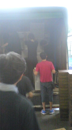 さあ、トラックも搬入口にバックオーライ!始まるよ〜ん