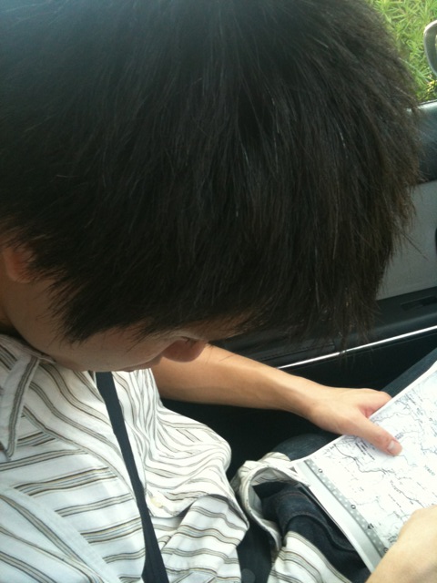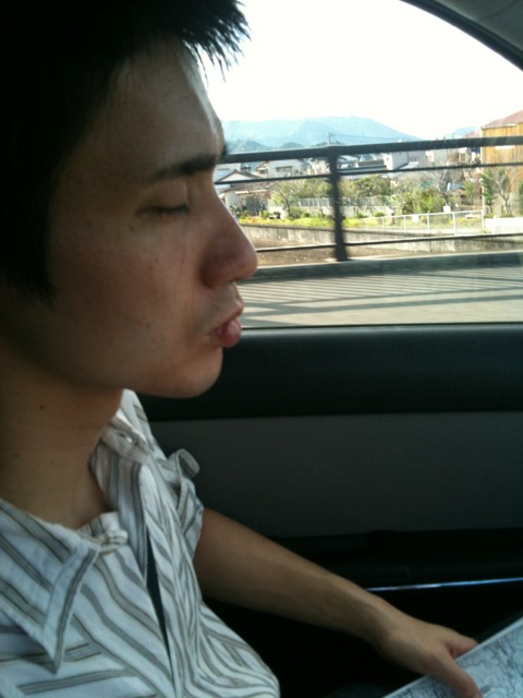 ところで、宮崎空港から延岡への移動の際のレンタカーでの車中だが、ナビゲーターである正一くんはと言うとね。