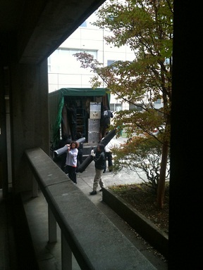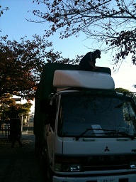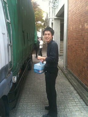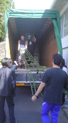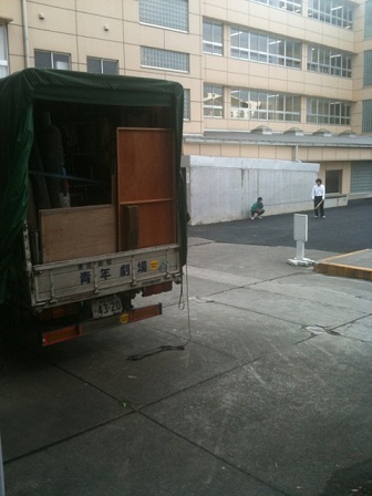 今日は10/12の、宮崎県は延岡市立黒岩中学校での公演に向けてのトラック出発日です。