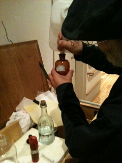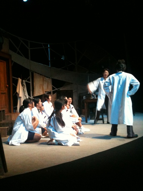 「キュリー×キュリー」は化学がテーマの芝居だけに試験管、フラスコ、ビーカー等、比較的高額で割れやすい小道具が一杯。それだけに扱いは慎重に。その甲斐あってか、過去二十年程で3〜4個しか割っていない。それがこの二ヶ月程の公演で6個も割っている(これは内緒、しかも、ある日私は、一日になんと二個もわりました。これはなにかある。過酷な運命に負けず頑張らなければ)