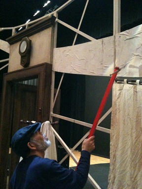 この芝居には(恐怖の仕掛け物)手作り電位計があります。ラジウム発見の場など、電動で目盛りを示して効果を上げています。(但し、ちゃんと動けば)