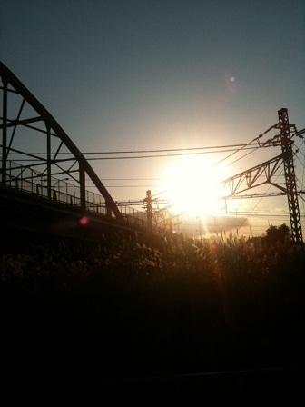 水戸での公演終了後、たくさんの顔に見送られて夕方の高速道を劇団のバスで東京に向けて走っている時、黒い雨雲が夕陽に照らされて、何とも言い難い景色が窓の外に広がっていた。