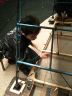 そろそろ、生徒さんの入場に備えようと、最終チェック。「あっ、電位計が動かない!」手作りの悲哀、故障はつきもの。モーターが動かないケースは初めて、「もう、入場開始の時間も迫ってきた。一体何処の故障なのか見当もつかない。」背中から冷や汗が流れてきます。諦めることもできない。楽屋に運び、とりあえずばらしてみる。電気は目に見えないので、あてもない。絶望的になり諦めかけたころ、切り替えのスィッチをうごかしたとたん、モーターが動きました。「うわぁっ!故障じゃないじゃん」スィッチが固くて引っ掛かっただけでした。全くの一人相撲、急に緊張が解けました。
