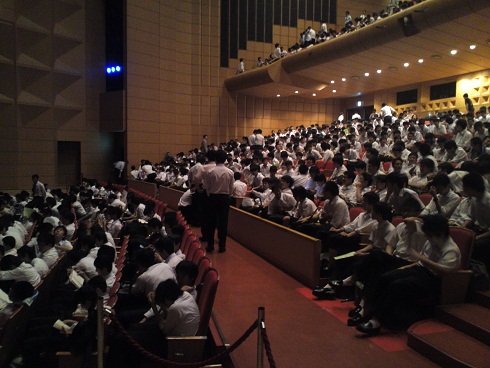 キャパ1300のホールに高校生がいっぱい。そして、すごい熱気! そして、本番!生徒さん達はとても集中してお芝居を楽しんでもらえたみたいで、笑いあり、拍手あり、声援あり、、、。あと、転換中(舞台を暗くしてセットの配置を変えたりする時)に手拍子が起こったり!本当にノリノリでとても楽しい初日となりました。