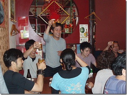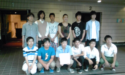 そして最後のシメは、やはり「打ち上げ」です。 文体部の星野君の音頭で「カンパ〜イ♪」 途中、青少年センターの高野さんも合流してくださり、青少年センター50周年の次の企画についてもご紹介いただきました。 「僕らの青春は演劇から始まった。」 第1部 大船高校と希望ヶ丘中学校による演劇の競演 第2部 シンポジウム「青少年演劇を熱く語ろう!」 パネリスト・横内謙介氏、鈴木裕美氏、紺野美沙子氏、黒岩祐治氏 第3部 交流会 9月23日(日)13時より青少年センターホールにて! 今の時代、子育てと演劇をしっかり結びつけて展開している青少年センターの存在は、本当に心強いですね。