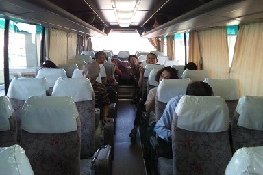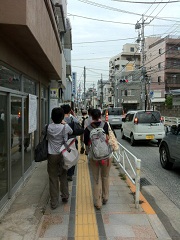 am8:45に宿を出発してイズミティー21へ向かいます。皆それぞれ、朝を満喫しておられる様子。