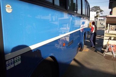 袖は、まだあります。 出発前にはバスにも腹一杯になってもらって、東京まで宜しくです。