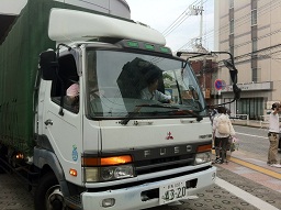 今日も熱く舞台は終わった、会館を後にするトラック野郎。