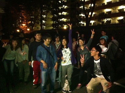 2012/10/14 今日は秋のコースの初日、新しく2人のメンバーが入れ替わっての旅です。今日の舞台は相模原おやこ劇場協議会の皆さんとの出会いです。こちらの劇場は青年の皆さんがとても元気です。搬入からバラシ搬出のお手伝い、そして小夜食の用意と、全部青年の皆さんがやってくれました。ありがとうございました。 そして肝心の芝居の方は、子ども達も良く笑ってくれて初日の緊張も何処かへ吹っ飛んでしまいました(反省点もありましたが)。客席の皆さんとも良い関係を作れたと思います。温かいお客様が全国で待ってる事を励みに、これから長い旅の始まりです。 写真は荷積みが終わった後に青年ブロックの皆さんと一緒に写しました。僕も数十年前に福岡の青年会員だったことを思い出し、懐かしくなりました。 シュッツ 島本真治