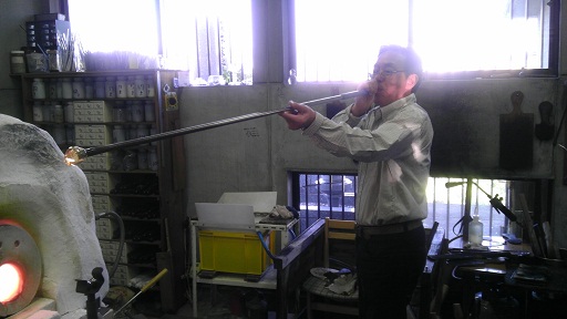 2012/10/20 ボンジュール!今日は、岡山に移動の日なんだけど、午前中ちょこっとステキなことがあったので、ジョルジェット福原がお届けしま〜す。 劇団の全国後援会の幹事をしてくださっている藤井哲信さんのお宅に朝っぱらからみんなでおじゃましちゃいました。 藤井さんは、昨日の阿波高校のすぐご近所でお寺の住職さんをしていらっしゃいます。劇団の中谷源さんの同級生でずっと劇団を応援してくださっている方です。昨日公演をご覧になったあと、夜軽く(?)懇親会をしたんだけど、その時ガラス工芸をしていらっしゃって大阪や東京で個展を開くほどの腕前と聞き、是非工房におじゃましたい〜と、みんなで押し掛けちゃったんです。