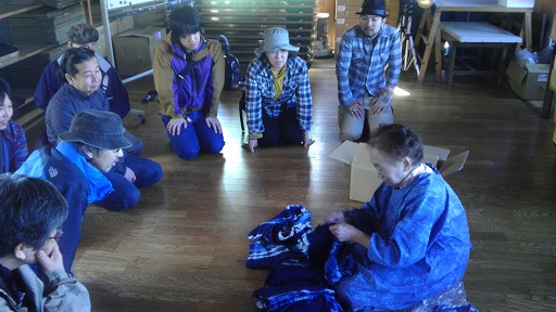 立派なお寺の奥にガラス工房と、なんと藍染工房までありこちらはお母様がやってらっしゃいます。 ステキな芸術一家なんですね〜。 お母様から藍染のお土産までいただいちゃいました。 藤井さんありがとうございました。
