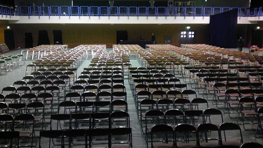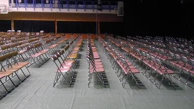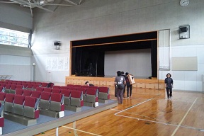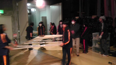 2012/10/19 皆さん、昨日に引き続き星野です!今日は阿波高等学校での本番です。仕込みの続きを早朝から始め、セットが学校の体育館にバッチリ完成。体育館は元気な生徒さんの熱気で一杯です。