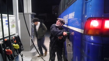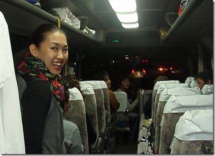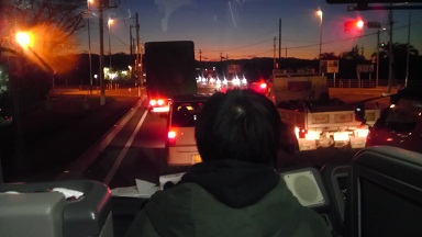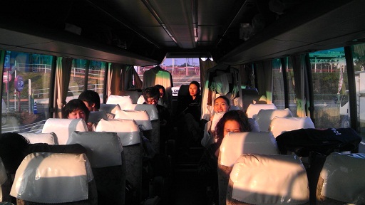 2012/11/1-2 熊本中央高校の公演が終わり、夕日を浴びながら、バスで夕食。なぜ??