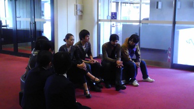 皆さんは児童福祉教育科の三年生の学生さんでコミュニケーション育成の一環で自分達でお芝居を演じるということでこのツアーに参加されました。お芝居はきっと児童教育の場で活かされる筈ですので皆さん愉しんでお芝居を創ってくださいね。 シュッツ・島本真治 |
