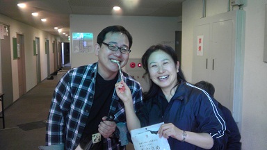 眠たい目をこすって、今朝会場の佐世保市民会館に着くと長崎在住の元劇団員、徳永さんが仕込みモード全開で待っていてくださいました。 徳永さんは、公演が長崎であるといつも待ってましたとばかり暖か〜く迎えてくださいます。