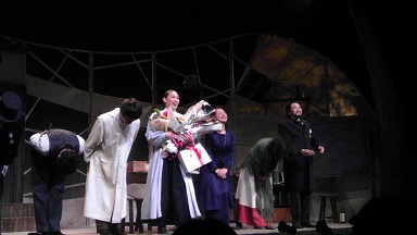 2012/11/14 広島市にやってまいりました。本日キュリー×キュリーをご覧頂くのは、広島県立高陽高等学校の皆様です。 とてもマナー良く静かに集中して見て下さいました。笑いの場面でも、少し遠慮がち!?おとなしい生徒さんが多いのかとも思いましたが、公演は成功のようです。 カーテンコールの生徒さん代表の挨拶では、とても感動してくれたらしく、話しながら涙がこみあげてくる、そんな場面もありました。 また、終演後の座談会が無かったので、バラシ作業中に生徒さんが劇団のバスを見つけて、出待ちをしてくれていました。 作業中という事もあって、マリーさん、ピエールさんが変わるがわるお話しさせて頂きました。 私、ビクロも少しだけ。 高陽高等学校のみなさん最後までご覧頂き、ありがとうございました。次はお隣の岡山県に向けて出発です。 岡山豊明 |