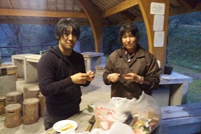 永友さんと杉田くんがひたすら黙々と剥いているのは…にんにく。 2週間ハードスケジュールだったので、皆で体力挽回だっ!!