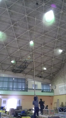 ![]() 舞台がない体育館が、、、 ![]() こんな感じになり 2012/11/25 本日、九州最後の体育館仕込み、宮崎日大中学校・高等学校の仕込みです。日曜日にもかかわらず50人近くの生徒さん達が搬入を手伝ってくれました。今日の体育館は1000人がゆうに入る大体育館。舞台が無く仮設のステージがあるのみ大体育館です。これから何も無い空間から、劇場へと大変身です。 ![]() 渡辺さんのロープ通しは 今日も絶好調! 又今日も渡邊さんのスーパーダイヤモンドマシーンが大活躍。さあどんな劇場になるのかお楽しみに! ![]() 遂に舞台が完成です! 明日は2ステージです。いい出会いになるよう頑張ります。 舞台監督 白石康之 |