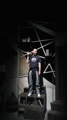 ![]() 2012/12/17 皆様こんにちは。キュリー班星野です。今回は埼玉県立宮代高等学校の皆さんとの出会いです。 さて、今回も翌日が午前公演のため前日の夜からの仕込みだったのですが、有難いことに宮代高校演劇部の皆さんがお手伝いに来てくれました。 生徒さんは搬入だけでなくセットを建てたり、釘うちを教わったり色々なことにチャレンジ。今後の部活動の糧に少しでもなったもらえたら嬉しいです。 さて、セットが建ったあたりで生徒さんは帰宅。この後は何をするんだろう、という生徒さんとキュリーファンの皆さんのリクエストにお答えして(?)、明かりつくりの現場を紹介しちゃいます。 ![]() 芝居はみんなでつくるもの。 ←照明部チーフの永友さんを先頭に ![]() 音響の山口ゆりさんも→ ![]() マリーさんも→ 大道具チーフ荒さんも↓(左側のマスクの方ですが、ちょい怖い!) ![]() みんなで協力して本番の舞台をつくるのです!んー。偉そうですいません。 翌日の本番も無事に終了し、残り2ステージ。最後まで観客の皆さんと一緒に良い舞台をつくれるように頑張ります! ![]() ちなみに、星野ばかりでつまらないというリクエストにお答えして(泣)、次回はピエール役の塚原君が登場です。 星野勇二 |