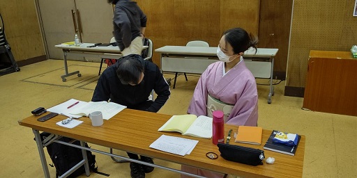 2022/1/18 本日は稽古総見。全ての劇団員がこの作品をより深く知り、『より多くの方に観ていただく為には?』を考える機会となる重要な稽古です。 今回はコロナ対策を十分におこない、オンラインでも参加できるようにした上で、普段の稽古より多数の劇団員が入り、読み稽古に見入ります。こちらとしては緊張がもの凄いです(^^;)