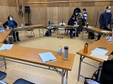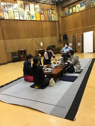その後出演者全員でドキュメンタリー番組「見えない基地」を試聴。作品の舞台である京丹後市の基地問題や 青森でのアメリカ軍基地の距離感を学びました。 その後読み合わせてみての感想、 意見交流をしました。 稽古の始まる5日ほど前、 出演者の一部の方は舞台である京丹後市に泊まり、 現場の雰囲気をこの場で共有してくれました。