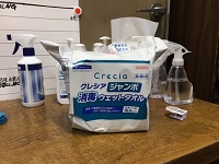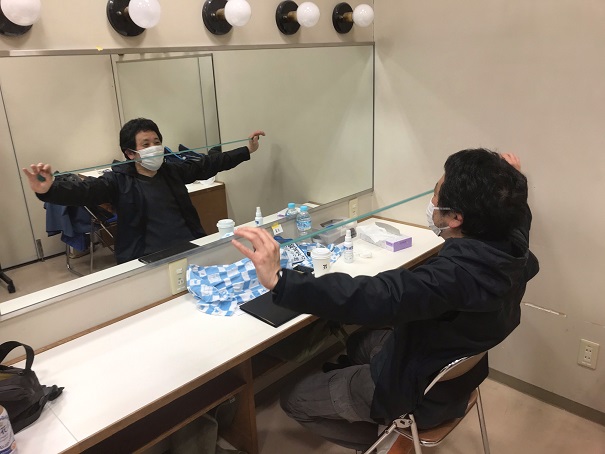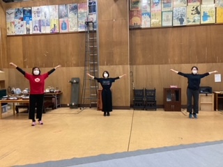さらに稽古前には掃除と並行して机や床の消毒もします。 新型コロナウイルス感染症が流行して1年、 稽古場では消毒が日常になっています。