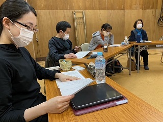2021/3/8 暖かい日寒い日が繰り返しやってくる破天荒な3月。今日は雨でしたが、 我々青年劇場は4月公演「囲まれた文殊さん」に向けて いよいよ稽古がスタートしました。 まずは一通り読み合わせから始まるのですが、 本日は多くの劇団員がその様子を傍聴し、 合同稽古という形で作品の内容を共有しました。