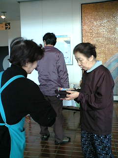 海老名演劇鑑賞会の会員さんから、ばあちゃん役の小竹伊津子に、藁草履ならぬ布草履のプレゼント。