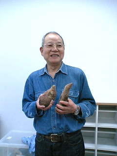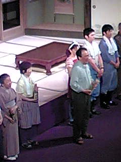茅ヶ崎演劇鑑賞会の顔合わせには、大勢の会員さんが参加してくださいました。そのパワーに圧倒される中、湘南名物「たこせん」の贈呈。(湘南演劇鑑賞協議会では、各会場で地元のお菓子をいただき、楽屋に季節の花を飾っていただきました)ARAKAWA Takayo