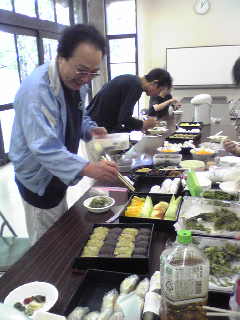 海老名演劇鑑賞会の皆さんは、お揃いのオレンジ色のエプロンで迎えてくださいました。