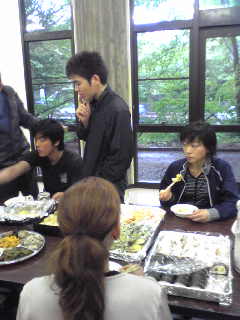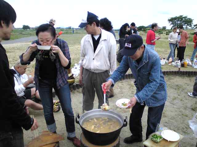 香川県丸亀市にて旅班恒例のバーベキューを行いました。演鑑の方も参加していただき大いに盛り上がりました。天気予報では降水確率40%と、ちょっと天候が心配でした。実際肉を焼き出して、さぁ食べようとした所に雨がパラつき、どうなることかと思いました。しかし多少の雨などものともせず、みんな焼けるはしから食べまくる!そうこうしているうちに、いつの間にか雨も上がり、引き上げる頃には青空がのぞいてました。