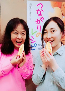 2019/3/8 みなさん、はじめまして。「つながりのレシピ」で及川邦子という名の母親役を演じます、大嶋恵子です。 わたしのたいせつな娘役の麗奈こと原田真衣さんと一緒にポスターの前で記念写真。 手にしているのは、朝6時に焼いたホットケーキで作ったサンドイッチ(スィーツカボチャサラダ入り)です。 おいしかったですよ!