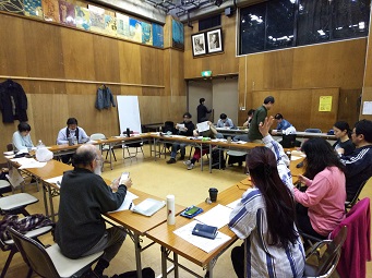 稽古前に各自準備の時間です。 身体を動かしたり、打ち合わせをしたりしっかり準備していきます! 演出の関根さんの提案のシアターゲームや台本読みなどで役者陣の交流、「つながりのレシピ」の世界観の共有をしていきました!