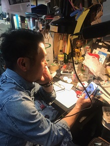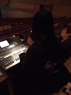 音響の寺島さん。 音響の卓に向かってお仕事中。。顔出しはNGだそうです(笑)