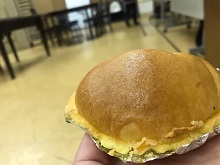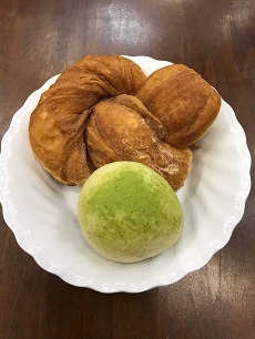 こちらは生まれ育った街、十条にあるパン屋さんの『フルフル』という名前のパン。中に優しい甘さのカスタードクリームが入っていてとっても美味しい(o^^o) 八代名菜子 |