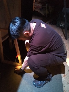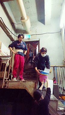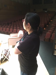 同じく大道具の松橋さん。 今回はチーフなので仕込みの際に指示を出してくれています!舞台裏の影明かりのチェックは大丈夫のようです!!