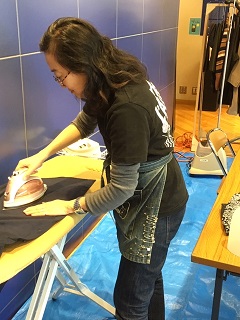衣裳の宮岡さん。 アイロンがけもお手の物、アイロンがけしながら芝居の話するのもお手の物。熟練の技ですね!