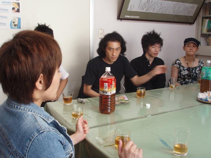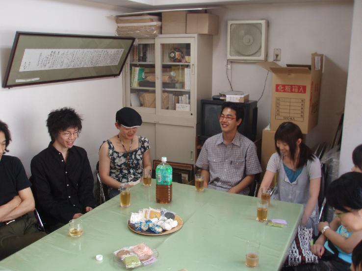 交流会は、お茶菓子などつまみながら、ゆるゆる雑談形式で行われました。 サポーターワークショップから参加してくれていた女の子は、「俳優さんの「素顔」と「役」がぜんぜん違っていてビックリしました」 なるほどなるほど。「素顔と役がいっしょだったら私はどうなるんですか」とは「修学旅行」カキザキ役の相楽の言。