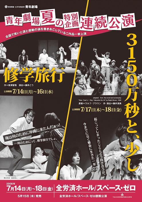 この夏、青年劇場では「夏の特別企画」と銘打って、「修学旅行」と「3150万秒と、少し」を連続上演します!