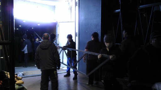 2013/2/20 皆様こんにちは。大道具スタッフ星野です。臨界幻想班は静岡県三島市にやって参りました。朝早い仕込み時間ですが、みんな元気!