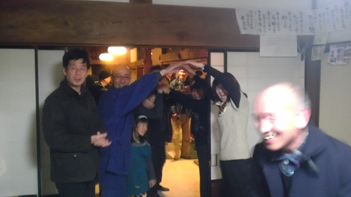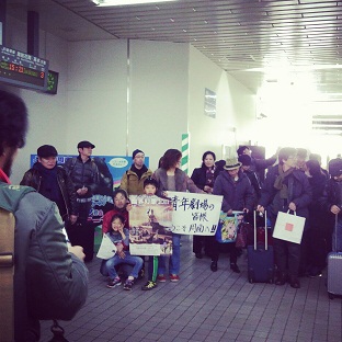 ![]() 2013/2/17 皆様、こんにちは!大道具スタッフ星野です。臨界幻想旅公演初日は福井県越前市。とても寒いですが、雪がサラサラでベタッとした都会の雪とは違いとてもキレイ! ![]() さて、搬入スタート。早朝から実行委員会の方がお手伝いしてくれました。 ![]() お昼の時間になると、実行委員会から画像に入りきらないたくさんのお食事が! ![]() 中川さんテンションMAX。 本番が始まり、休憩中にセットチェンジをするのですが、客席をチラリと見たらほぼ満席!話を聞くと関係者も含めて800名を超える入場者数だったそうです。ホントに嬉しい! ![]() 終演後には公演班全員で実行委員会の皆様との大交流会。 会場は事務局長を務めて頂いた諏訪大明さんが住職をしている金剛院のお堂です。 ![]() (注:左側が諏訪さん、右側が福井県出身の劇団員・湯本さん。) 交流会はとにかく盛り上がりました。なんというのか、笑いと笑顔が弾け飛んでいました! ![]() ジャンケン大会でサイン色紙と住職さんからプレゼントをもらって笑顔。 ![]() ん、、、何だかわからないけど笑顔。 ![]() ワオ!お見送りアーチで荒さん笑顔。 ![]() 広戸さんも。 ![]() 北さんも。 ![]() 岡本さんも。 ![]() 清原さんも。 みんな笑顔。 本当に良い初日を迎えられたと思います。 でも、ここから30キロ少々行くと原発がある。次に伺う静岡県にも。多くの方にこのお芝居を届けて、これからの日本を一緒に考えていきたいと思う。 星野勇二 |