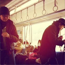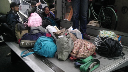 2013/2/19 本日静岡は三島に向け出発です。劇団にて照明機材を荷物室に積み、集合場所のモード学園前に向かいます。
