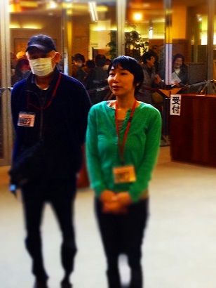 この日の入場者数は、988名。おそらく1000人をこえるみなさまがこの作品に関心を持って支えて下さったことが、伝わってきました。終演後の交流会で、お芝居の感想を話してくださいました。岡山には、福島から避難してこられているかたが多くいらっしゃるそうです。そのみなさんの気持ちに少しだけ寄り添う事ができそうな気がします、街角で脱原発の声を上げる人間になります…など、キラキラした笑顔で話される岡山のみなさんとの楽しい時間は続いたのでした。