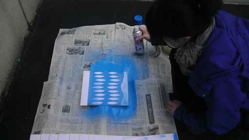 大道具も仕事開始です。 まずパンチと言う床に敷く物があるんですが、そのつなぎ目にテープを貼ってつなげます。でも今日は凄く寒かったので普通に引っ張ると切れてしまいます。なのでこの様に息で温めながら引っ張ります。