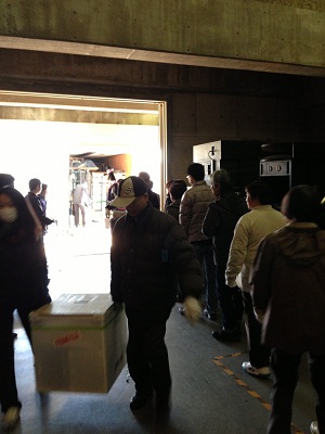 2013/2/21 おはようございます。めちゃくちゃ寒いです。 みんな震えながら作業着をトラックから降ろしています。